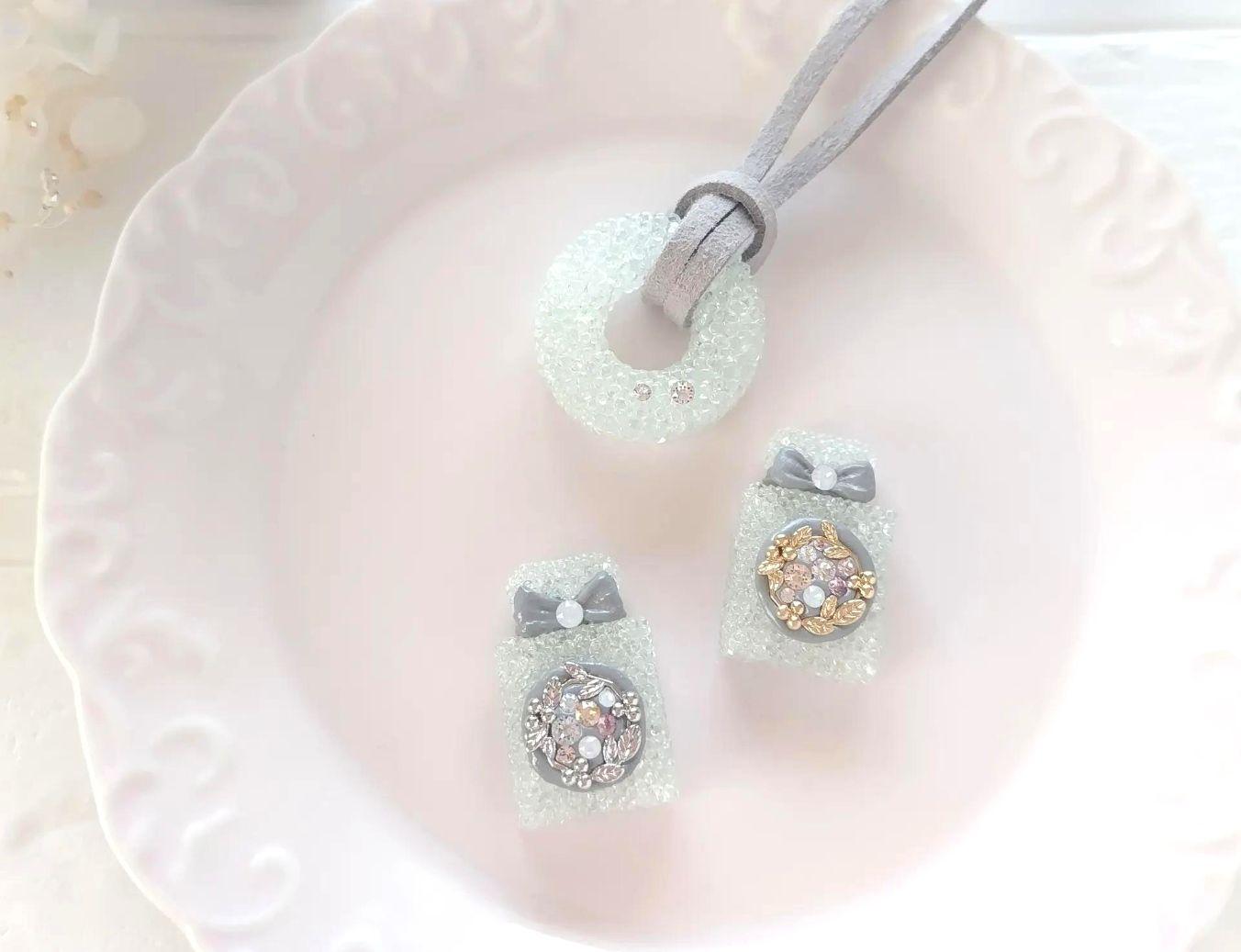 大きさ不揃いのCrystalと裏側にも施された優しくて可愛い細工の作品に一目惚れです(購入者様より)